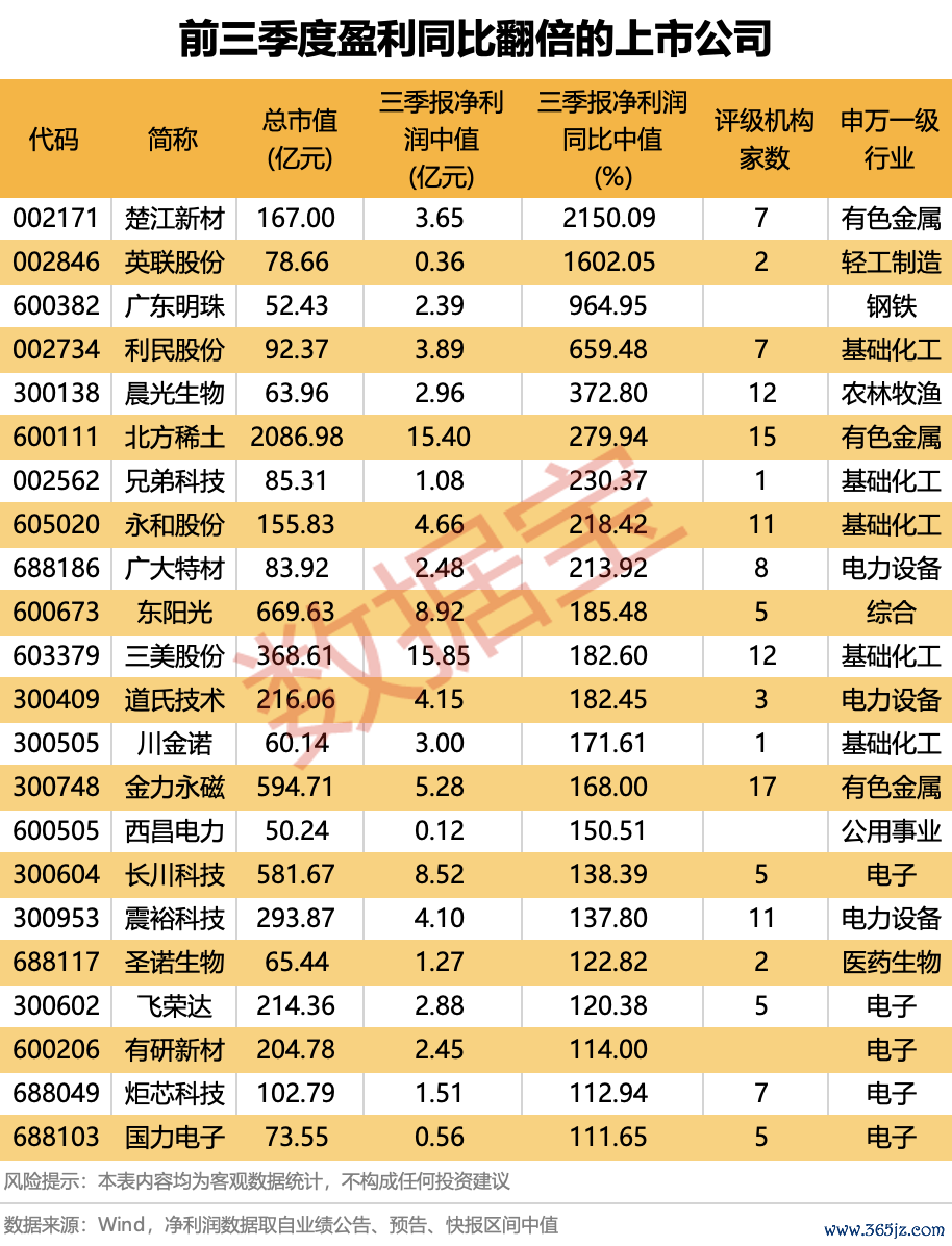 最高增长超20倍 三季报业绩大增股出炉最高增长超20倍 三季报业绩大增股出炉
